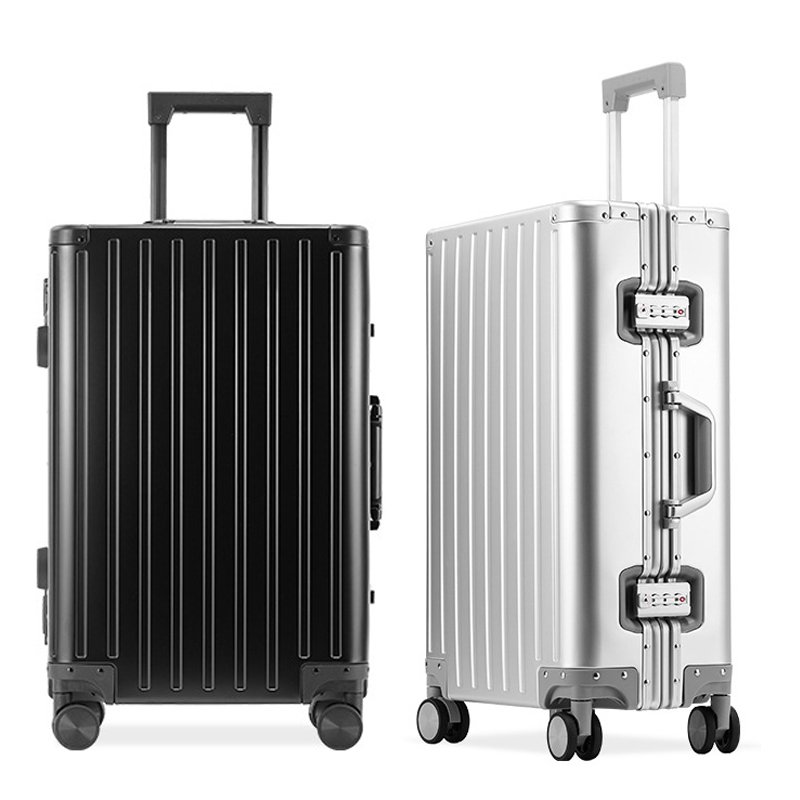 Unisex luxury carry-on suitcase, all-aluminum portable case, aluminum-framed suitcase with TSA customs lock