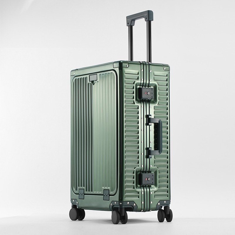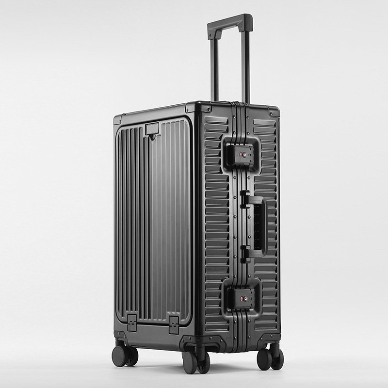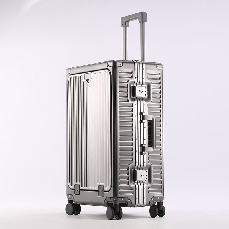 New all-aluminum-magnesium alloy 20-inch carry-on luggage front-opening lid USB interface handle case TSA password